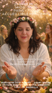 29 Mars 2026 – Harmonisation de Printemps – régénération sons, chant et olfaction – lecture Tarot- 14h30/17h30 – Paris 75003